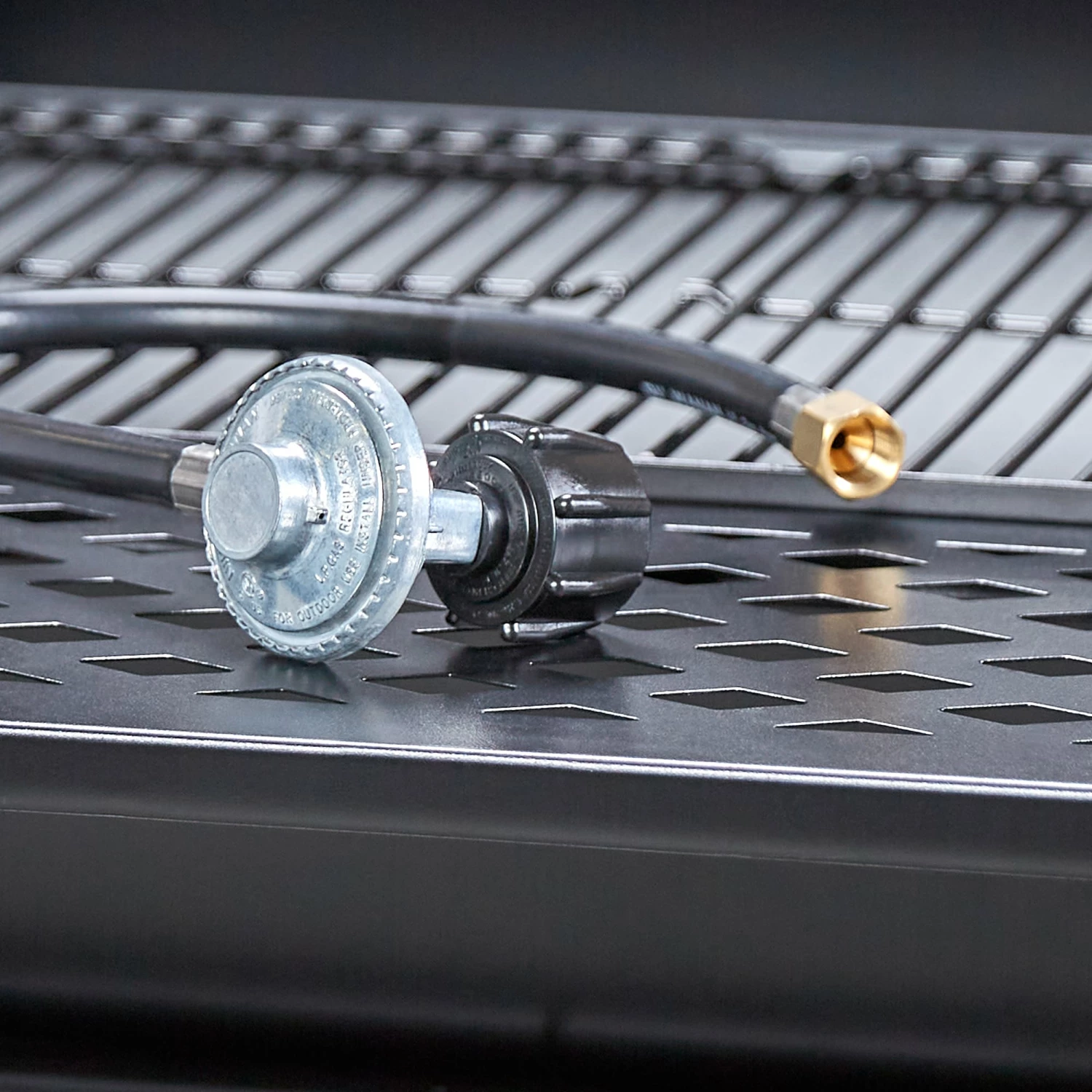 Designed to fit most grills, this 20” universal low-pressure hose and regulator kit connects to type-1 fittings with side burners. And don’t worry about the elements beating up the hose; it’s weather proof and built to last.