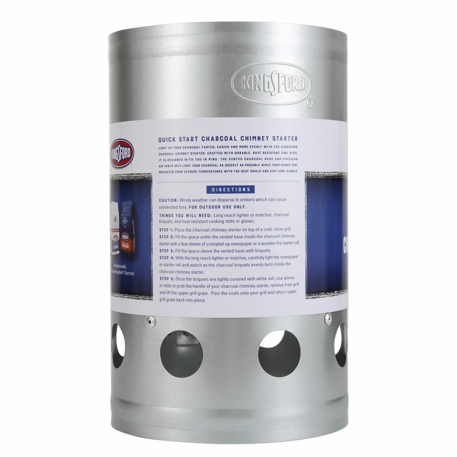 - FAST WORKING CHARCOAL CHIMNEY STARTER — This easy to use charcoal chimney starter works fast. With the Kingsford® Chimney Starter, your coals light up quickly and evenly
