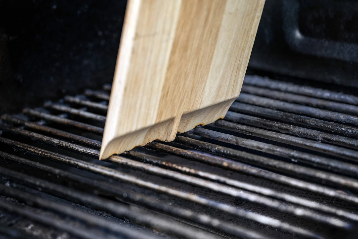 Now your grill can be safely and easily cleaned with our natural hardwood scraper. Not only does it customize to any grill grate to help easily remove burned-on food, but it features a tooth that fits between the grates securing the scraper for easy back and forth motion. It’s safe, natural and easy to clean, requiring no maintenance.