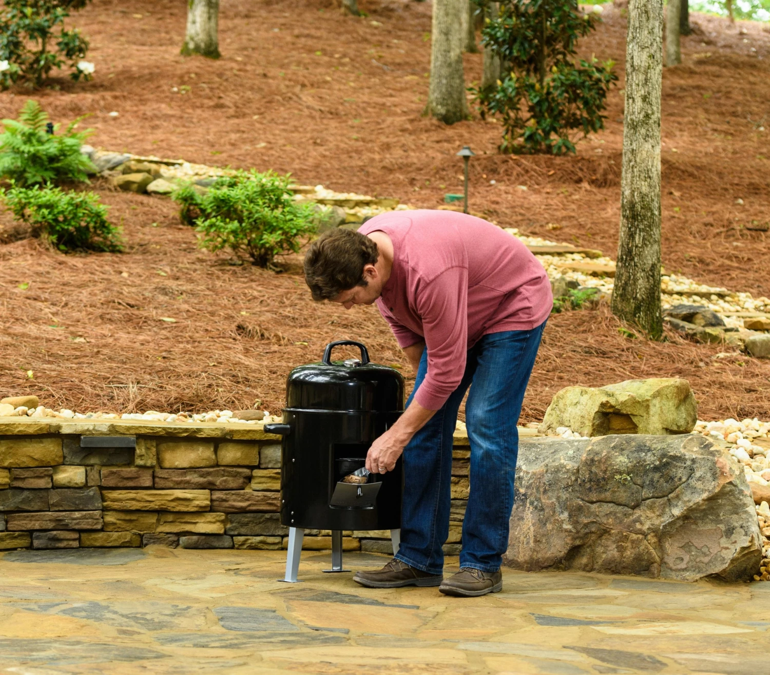 - Front access door makes adding wood chips or charcoal easy