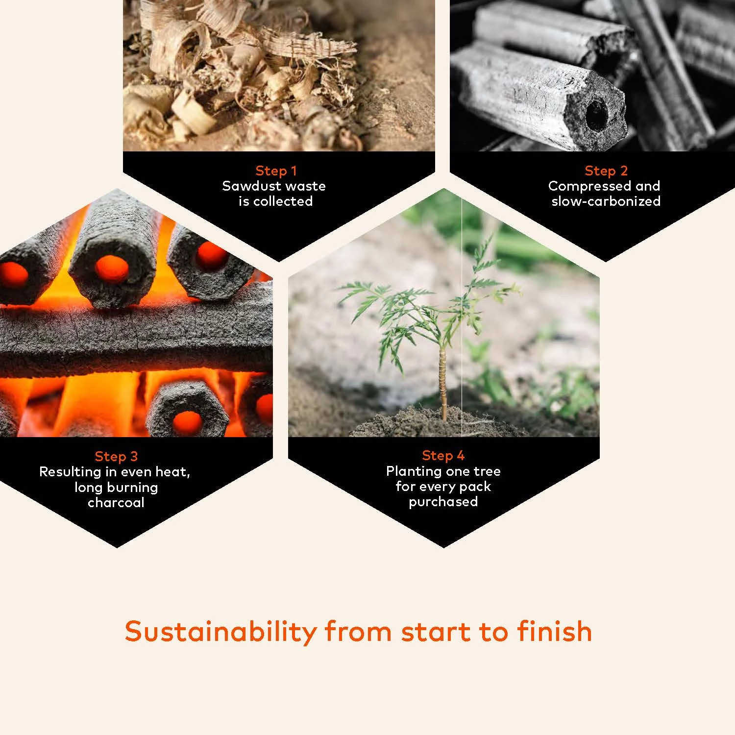 As seen on shark tank! Season 12 es6. Grilling is more than just a meal – it’s a way to turn dinner into a party. From the first flame to the final sizzle and char, firing up the grill is always the start of something special. That’s why we created Prime 6 – a better way to grill. It’s a 100% sustainable product, made from hardwood waste compressed into dense charcoal. That’s it. No binders. No additives. No filler. No chemicals to smoke up your food. Plus, its unique hexagonal design means it burns hotter, longer and more evenly, for optimum cooking – that’s why so many pit masters rely on it to develop delicious fire flavor. And for every pack sold, we’re planting a tree – so we can all enjoy cooking outside in nature for generations to come. Get the best out of your grill, pure taste from your food – and make memories to last a lifetime. Premiering on shark tank season 12 in 2020. As seen on ABC’s the view. Food network’s wine and food festivals, burger bash, titans of BBQ and beach carnival. Charcoal of choice for thousands of pit masters and professionals from pod, tao, blue hill stone barn and many more.