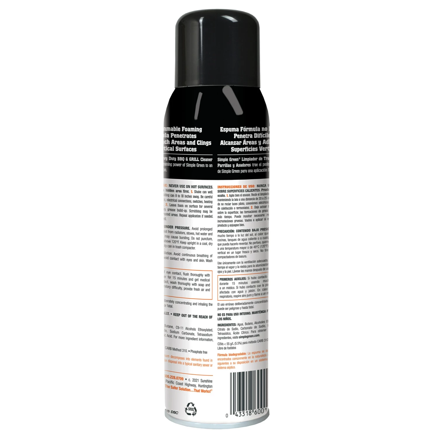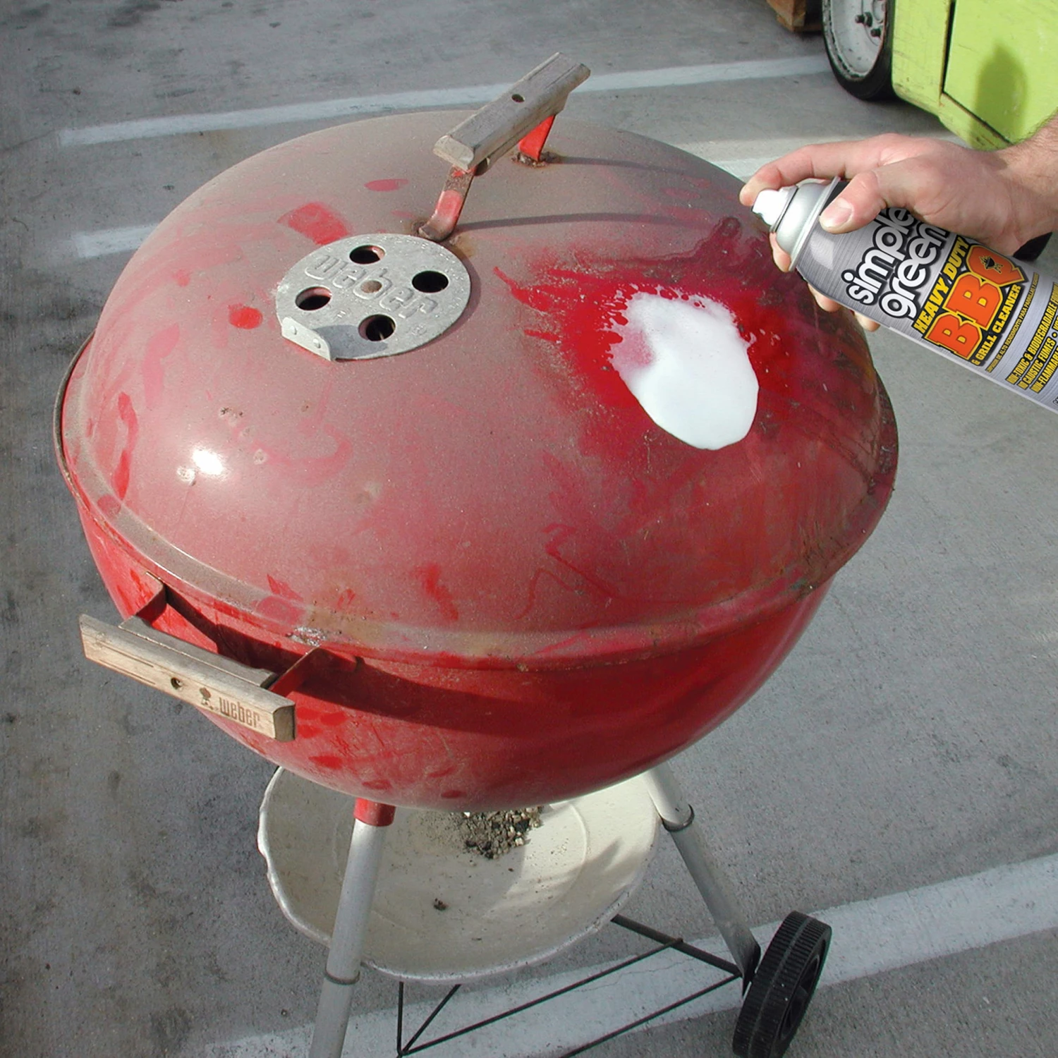 Simple Green Heavy Duty BBQ and Grill Cleaner cleans heavy grease build-up, baked-on food and carbon deposits on grates, stainless steel parts, smokers, BBQ covers and more. The residue-free formula is safer for use on cooking surfaces. The spray foam clings to vertical surfaces and hard-to-reach areas and contains no added color or scent. The non-flammable, non-abrasive and non-corrosive formula safely cleans steel, aluminum, plastic and more.