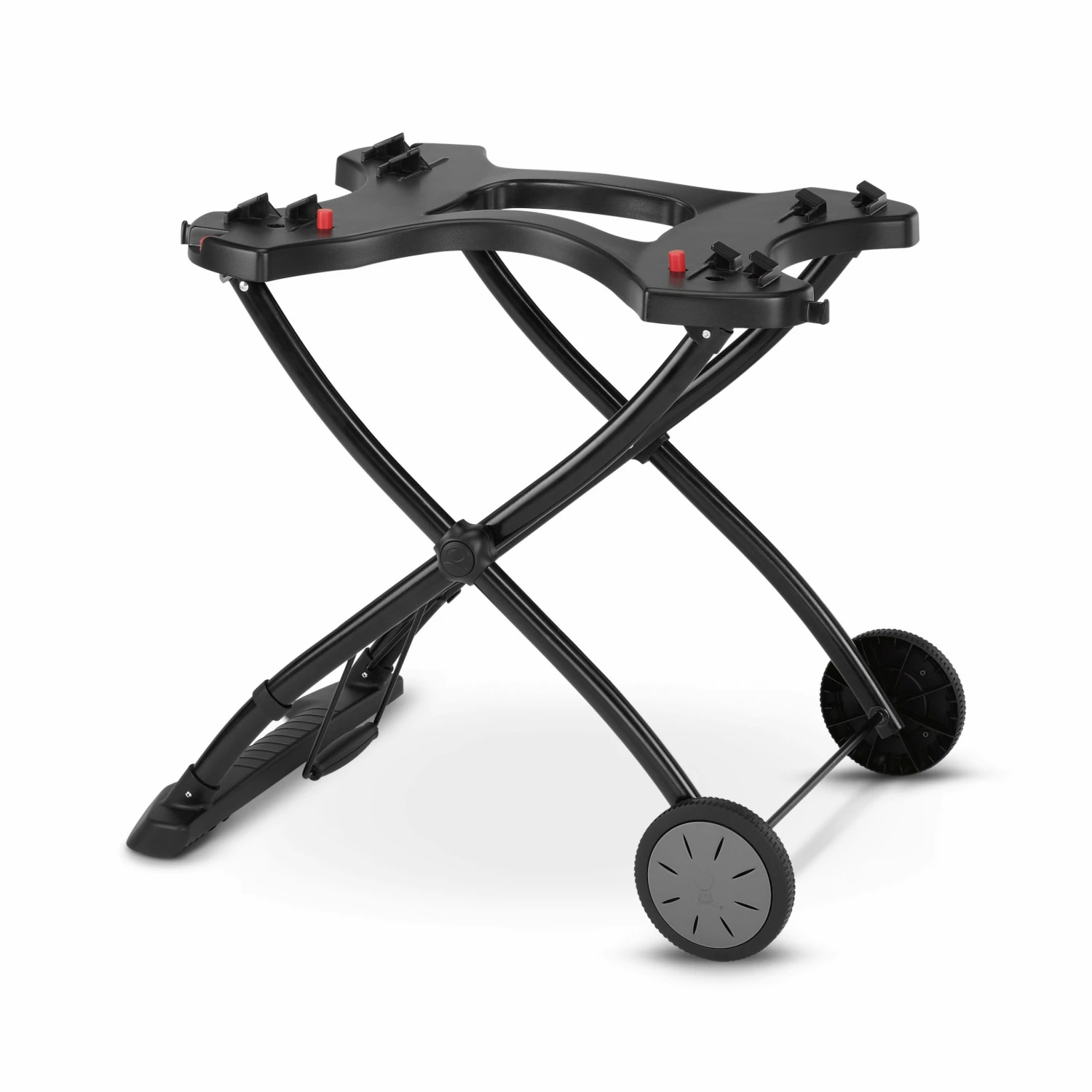 Grilling on-the-go is made even more convenient with the Weber Q portable cart. Use it to transport your 2014 Weber Q 1000/2000 series grills. It features a push button, allowing you to quickly fold and unfold the cart with your grill securely in place.