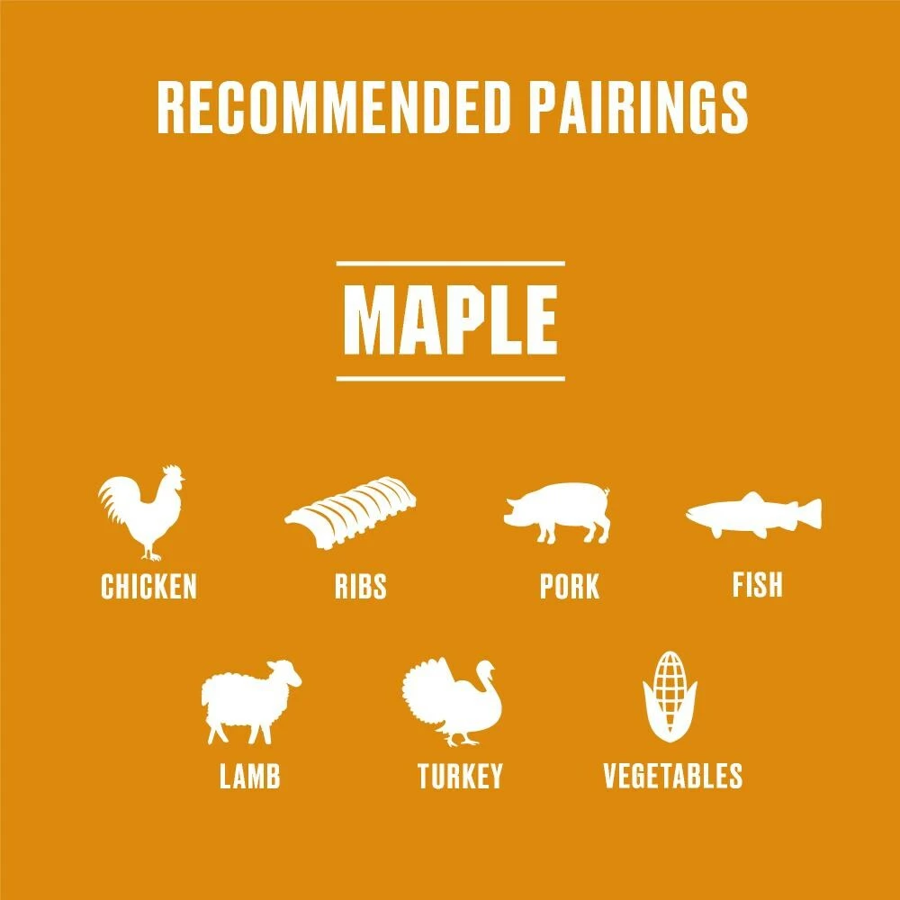 Good grillers know how to embrace the sweeter side of smoke. Now you can get Kingsford® quality flavor in any pellet grill, and fire up 3x more maple wood compared to the leading brand for unbeatable maple wood smoke flavor. The fruity smoke of 100% pure maple wood is a great choice for most proteins and vegetables, and pairs particularly well with salmon. Safe for all pellet grills, these BBQ pellets also keep the temperature of your grill consistent for even heat that will enhance your grilling experience and add full-bodied flavor to just about everything you cook. Not just for grilling, they’re also great for baking and roasting. Kingsford® sources maple hardwood from across America to bring you authentic, made in USA pellets. These all-natural pellets are made with pure flavor hardwood to deliver the bold, sweet taste of real maple wood without compromising quality. No fillers. No binders. No dyes. No preservatives.