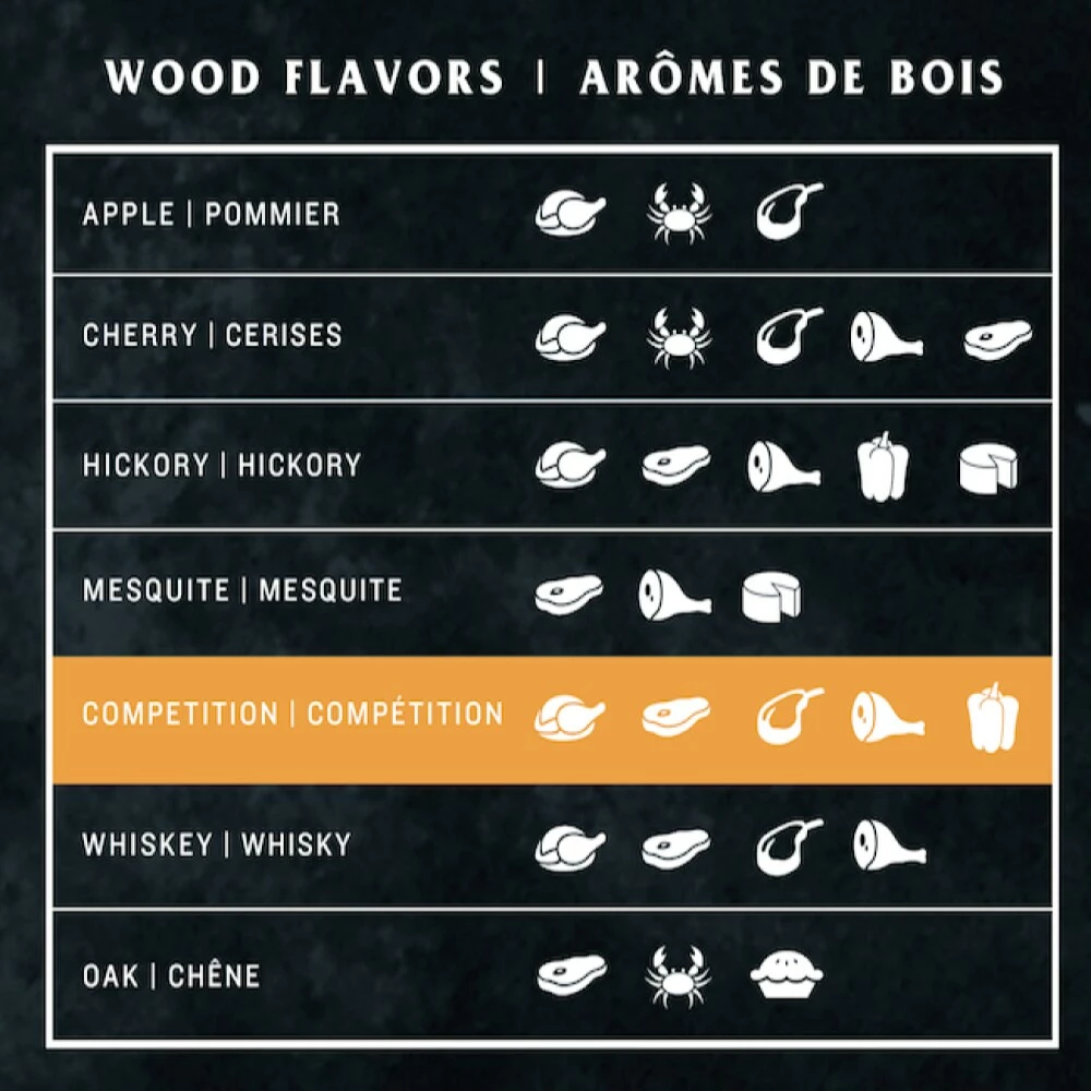 - Food-grade pellets to enhance the flavor of pork, beef, chicken, vegetables and cheese