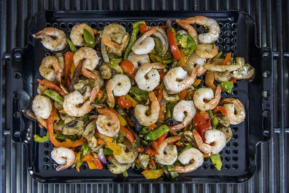 - Small slots for easy grilling of seafood and vegetables