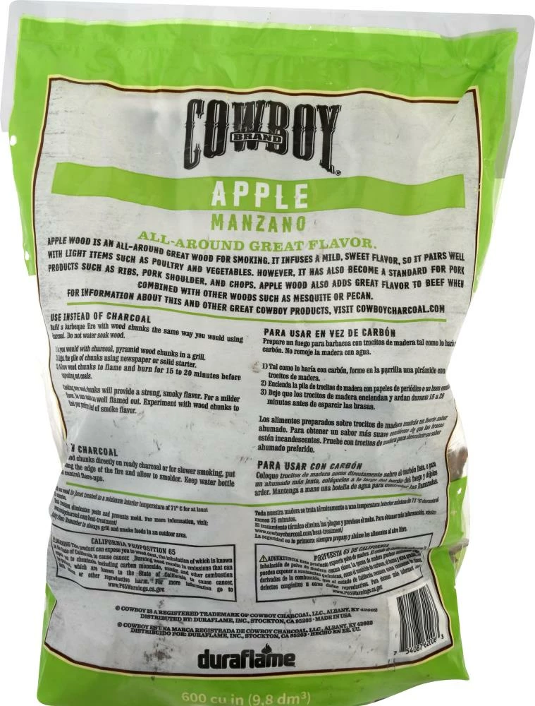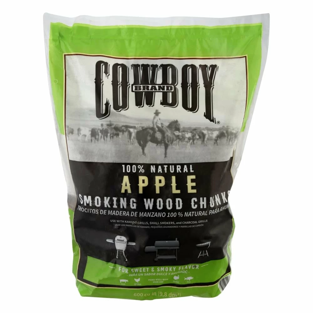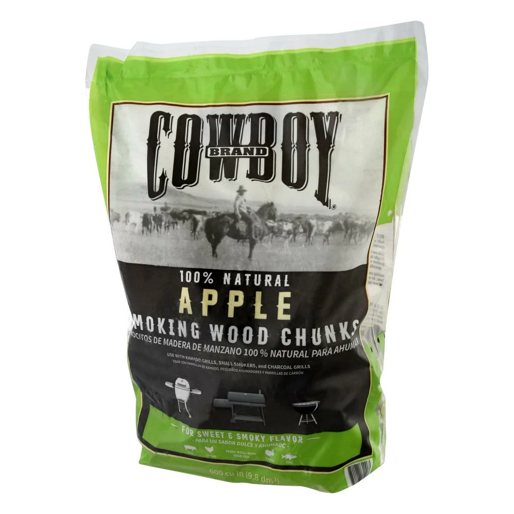 Discover what chefs across the world already know about the distinct and fruity flavor that Cowboy Apple wood chips provide to the most popular and rarest meats. The crisp, sweet Apple aroma from the rich Apple woods of the Midwest will enhance any grilling experience. Cowboy Apple wood chips are a healthy, zero calorie, no-sodium and nonfat way to flavor foods. Use in charcoal or gas grills.
