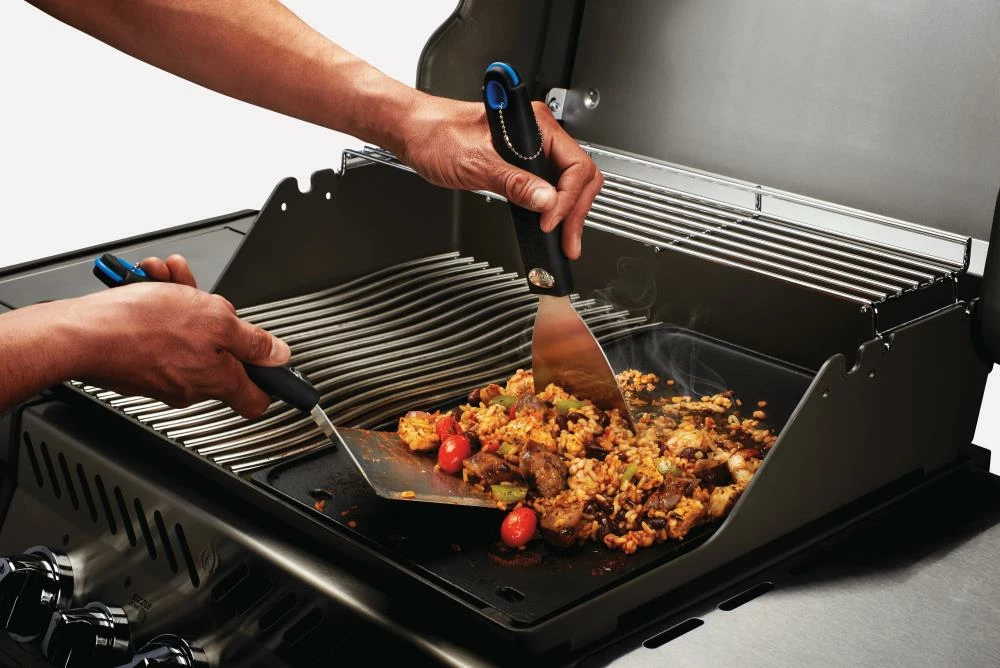 Try European style grilling with this Two-Piece Plancha Toolset, ideal for use with the Napoleon Cast Iron Plancha. The oversized spatula easily handles all types of food while the scraper provides safe and easy cleanup. Durable stainless steel construction with ergonomic handles means years of comfortable use.