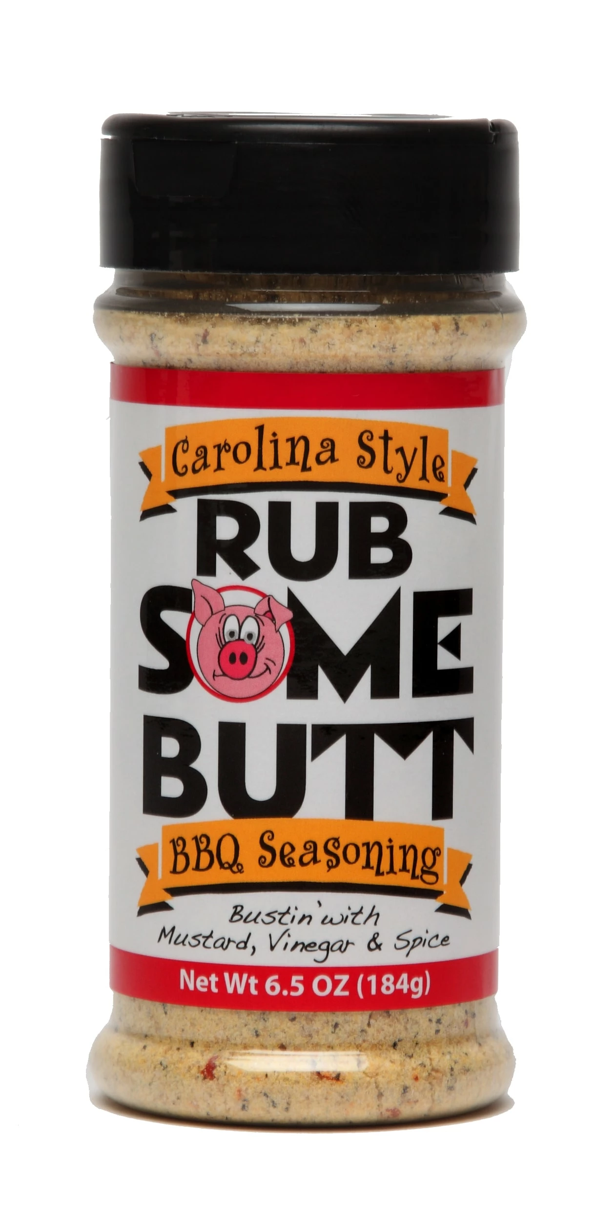 As JT would say, “I’m going to Carolina.”?et he was thinking about Rub Some Butt Carolina Seasoning7hen he wrote that song.?rive the back roads of the Carolinas, and you’ll find some of the best BBQ shacks in the South. Well, this is their rub. With a hint of mustard and vinegar, your guests will think they’ve died and gone to Carolina.