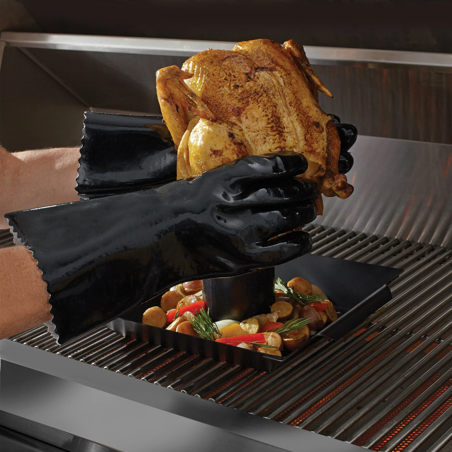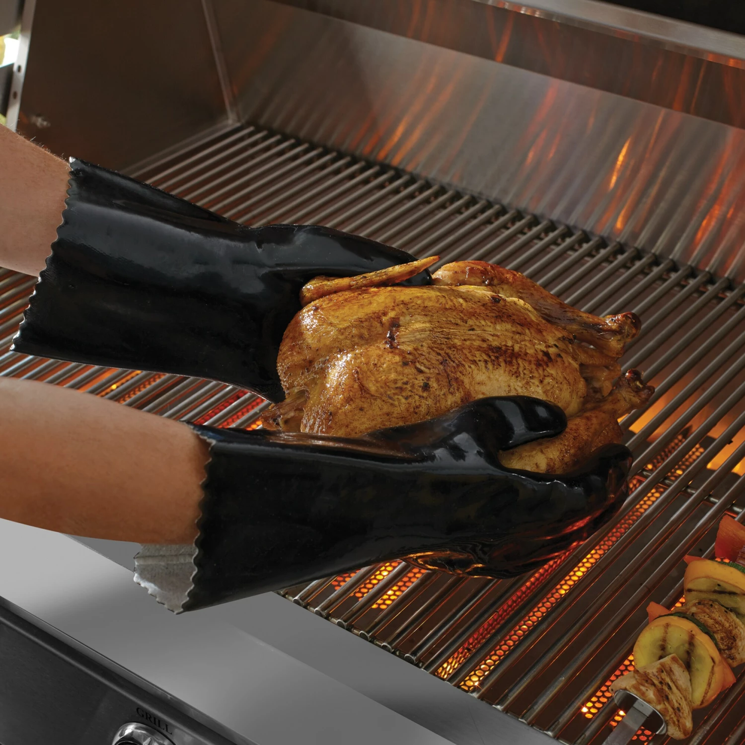 - Remove hot food directly from the grill with these insulated gloves