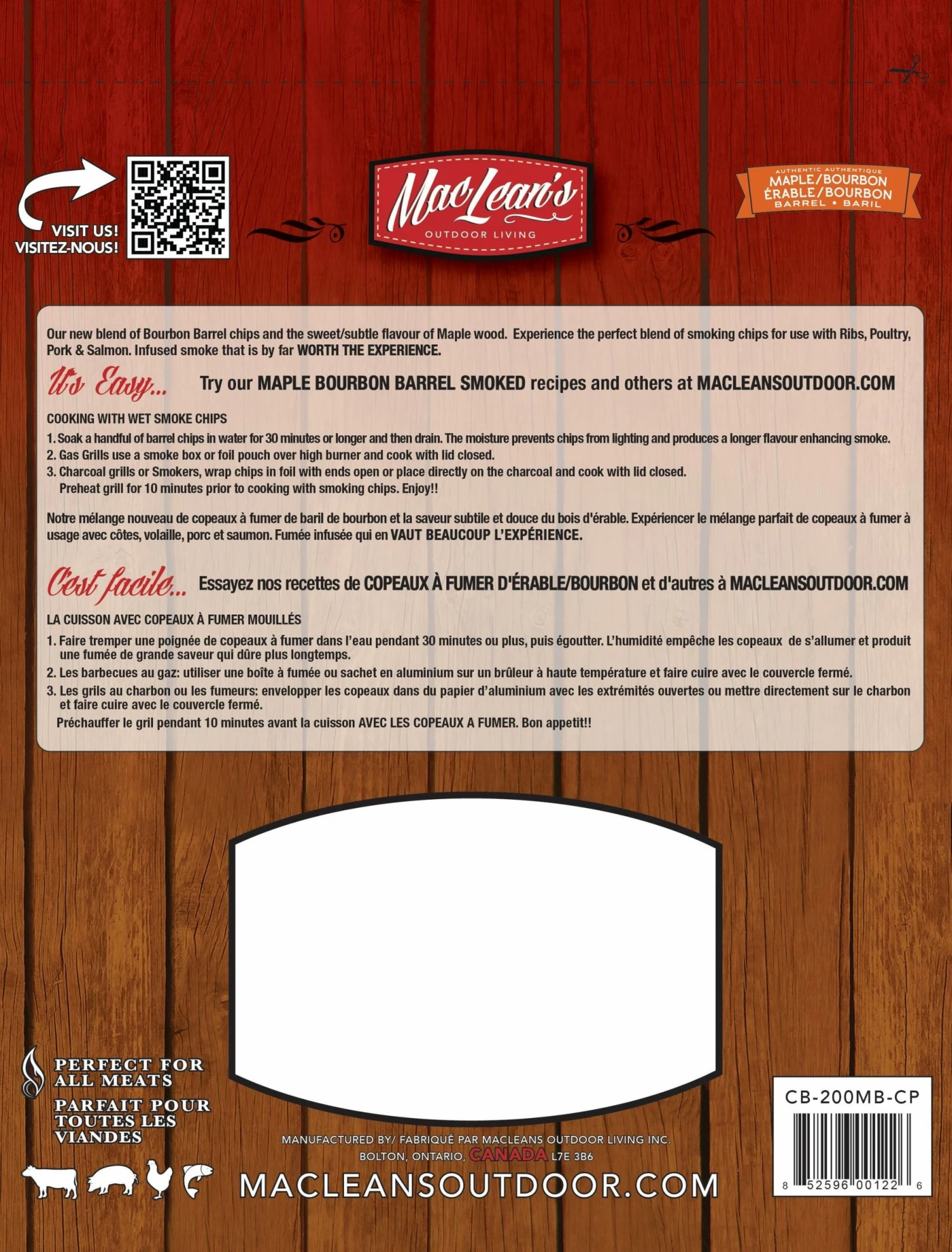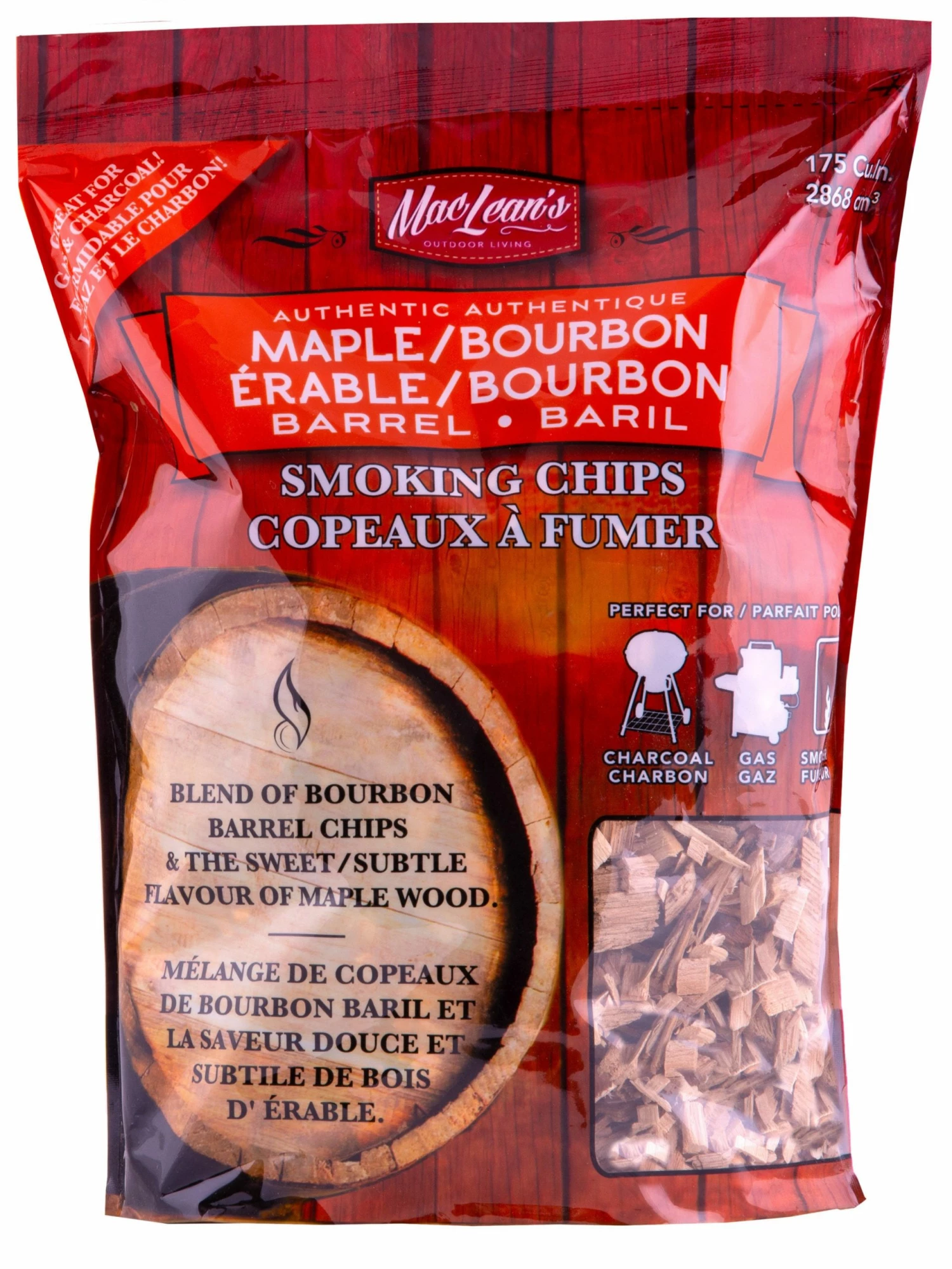 Another one of our favorite liquor barrel smoking woods blended in a 50/50 mix with Bourbon and the sweet and subtle flavor of maple wood.